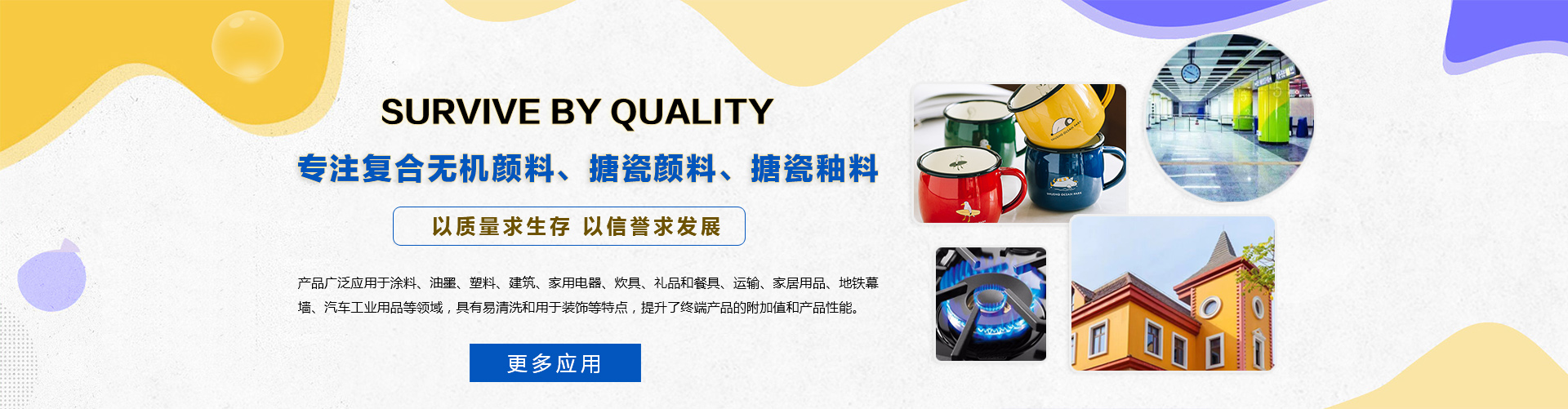 主要適用于日用搪瓷、工業(yè)搪瓷、搪瓷標(biāo)牌、搪瓷貼花紙、搪玻璃、建筑琺瑯板、日用玻璃、粉末涂料等行業(yè)。產(chǎn)品性能好、品種齊全......>>更多